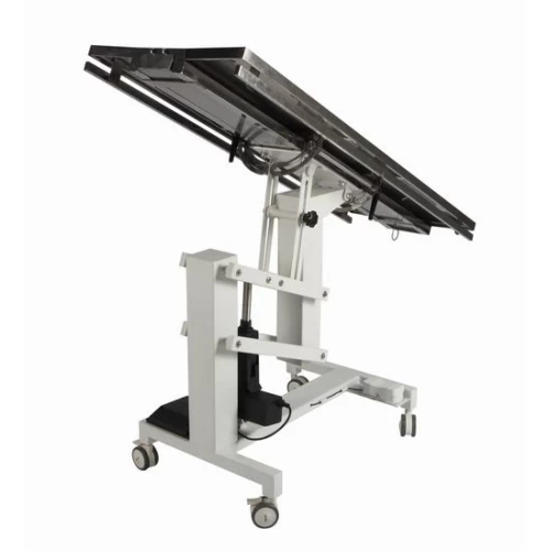 - A two panel system that adjusts from horizontal to near vertical to hold the pets in the desired position during surgery.