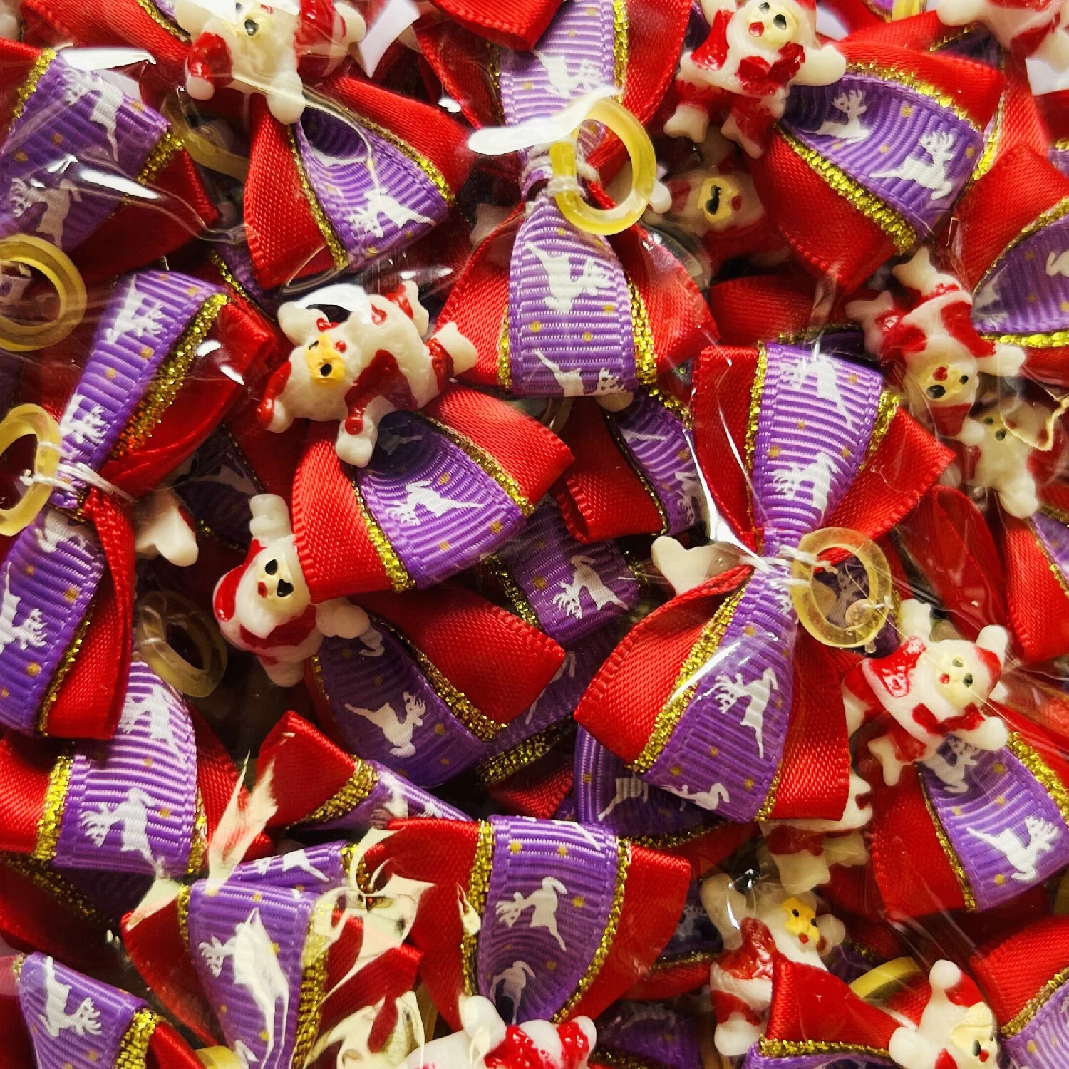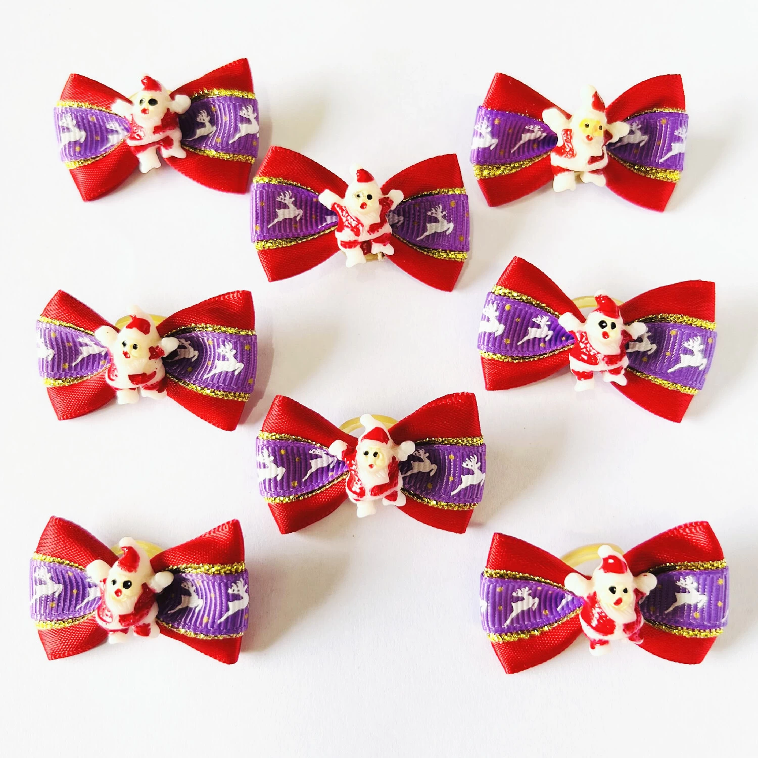 - All bows are tied with durable latex bands that won’t pull hair.