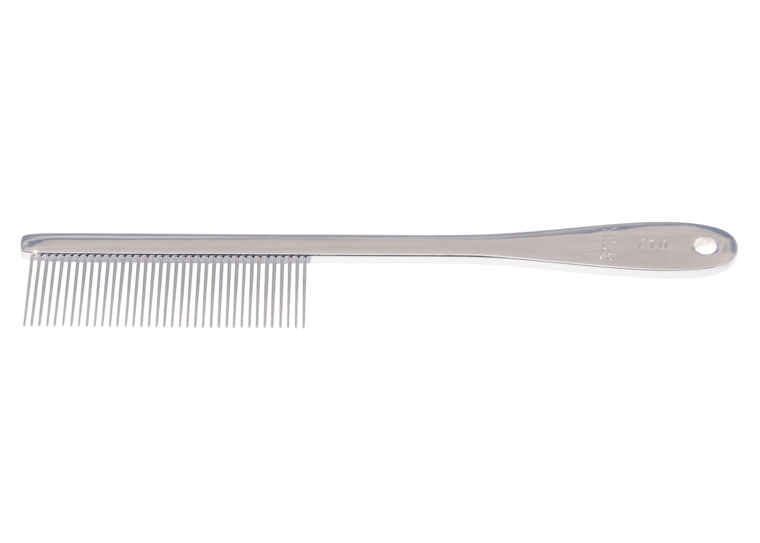 This fine-toothed comb is used for removing knots and tangles, for general combing or for the removal of fluffy undercoat. May also be used after brushing to check for any mats left in the coat. If necessary use an extra fine comb to be sure all mats have been removed. By removing dead hair, undercoat and dandruff the coat’s natural healthy shine will be restored.